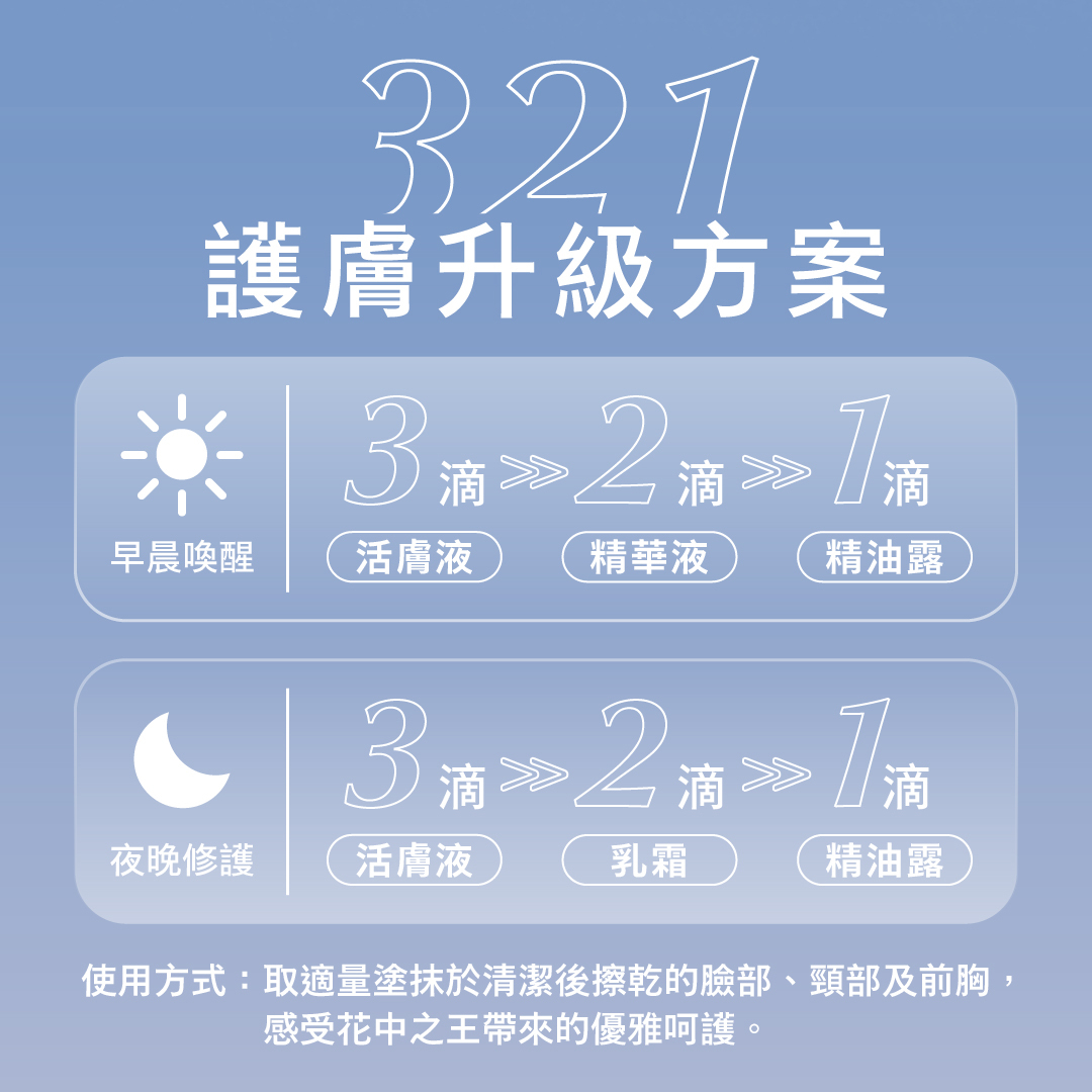●睡前保養:化妝水>妍萃茉莉緊緻精華油 (配合輕柔拉提按摩全臉至肩頸) >乳霜