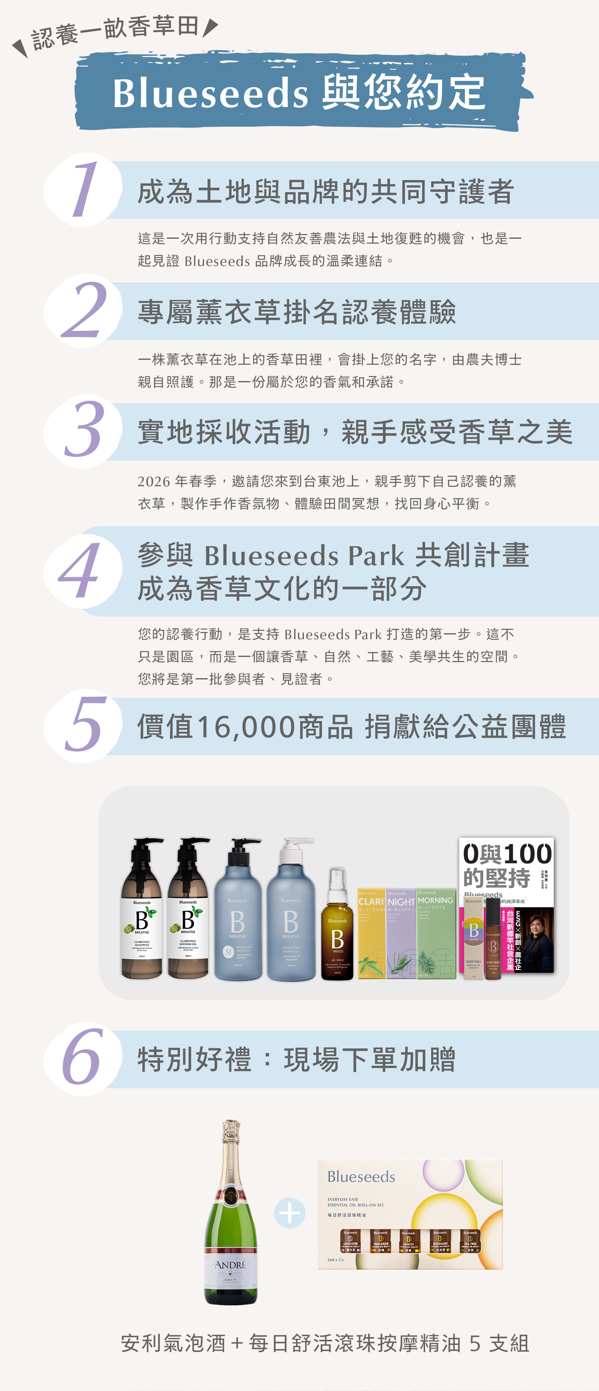 【11/8當日限定】1111永續生活認養一畝香草田 - 共好行動捐贈方案|下單現場加贈 安利氣泡酒與每日舒活滾珠按摩精油 5 支組