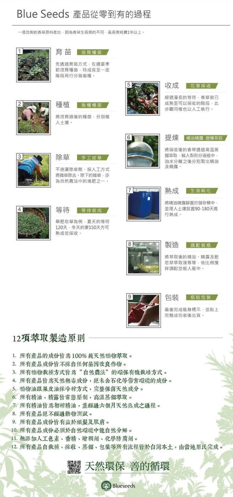 這過程沒有化學添加,洗澡後天然皂素的泡沫將被大自然分解,身上也不會有任何化學殘留,只有天然精油精露的芳香。