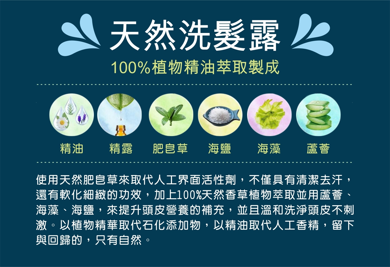 具深層清潔保濕的洋甘菊精油,搭配舒緩放鬆的薰衣草精油,淡淡的花草香,不僅滋潤呵護您的頭皮及髮絲,更帶來身心的嚮宴。零人工化學合成添加,使用自然農法栽種初萃精油精露精心慢製,適合所有髮質使用,洗後清新舒緩不黏膩。