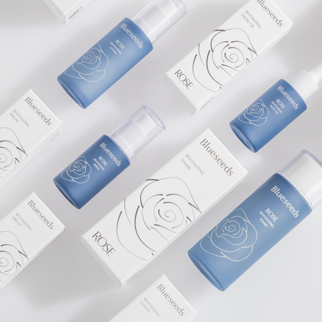 Blueseeds 的晨曦玫瑰煥顏保養系列蘊藏數千朵台灣特有大花玫瑰,經茶樹精露灌溉,保濕力卓越,每一滴都充滿大自然的珍貴能量。透過高效活性成分護理肌膚,全系列採用了玫瑰果油、金盞花油、維生素E、乳木果油等多重天然成分,肌膚更穩定、彈潤,成分更天然、有效,膚況更亮更年輕。專門為想要自然抗老的消費者設計,讓肌膚保持年輕光采。