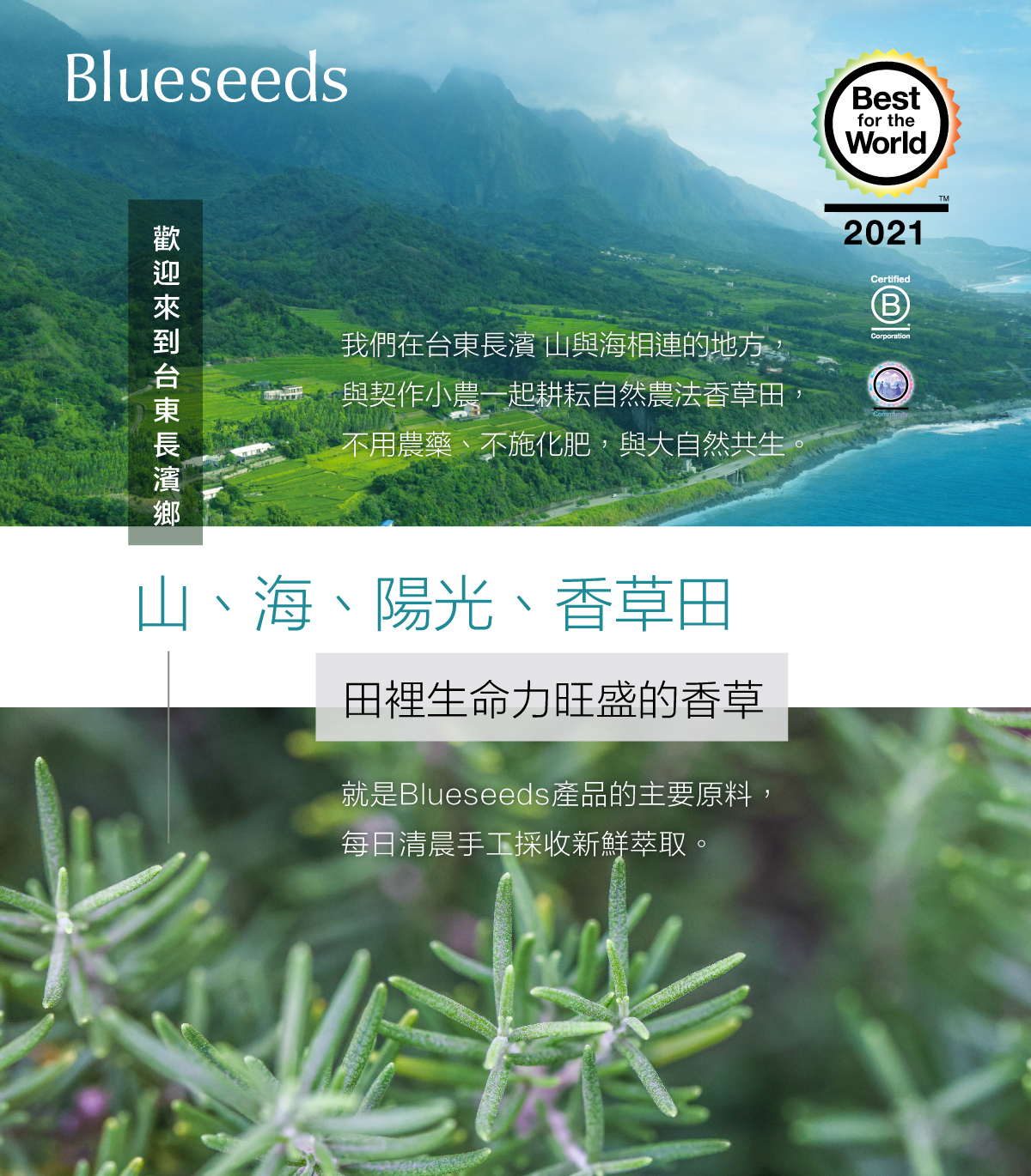 Blueseeds堅持所有原料來自於土地,並以自然農法栽種萃取原料,洗髮系列以全株肥皂草為基底,使用天然肥皂草取代人工界面活性劑,不僅能清潔去汗,還能讓髮絲軟化細緻,對於敏感肌膚者也能安心使用。整瓶零人工化學合成添加,改以精露取代水分,所以不需添加抗菌劑。以初萃的精油精露保存植物能量外,也替代了石化添加物、人工香精與防腐劑。透過月桃、尤加利、薄荷、洋甘菊、迷迭香、薰衣草等天然香草的自然療癒力,幫助髮根強健並滋養頭皮,舒緩因代謝或接觸環境所造成的頭皮油膩或乾澀感。此外,蘆薈、海藻、海鹽的添加,讓你在溫和潔淨的同時也能為頭皮、秀髮做營養的補充,回復秀髮本身的健康與柔順。
