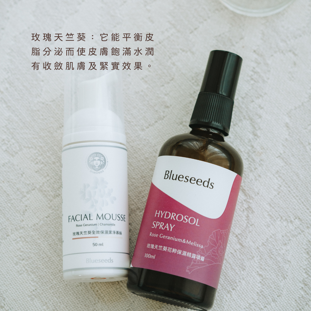 Blueseeds 天然花粹透過銅爐蒸餾,萃取植物的精華,溫和配方發揮補水保濕,為肌膚帶來清新活力。