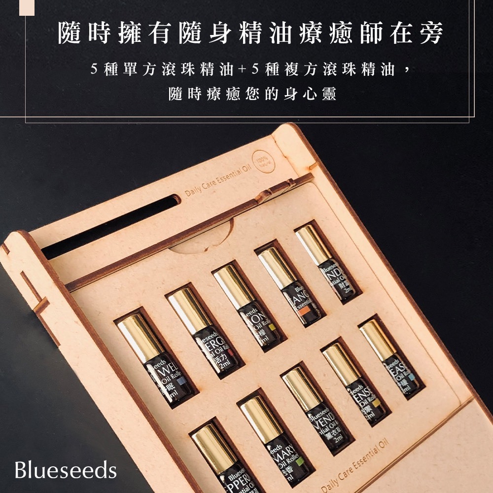 Blueseeds 每日療癒精油組,是你最棒的隨身芳療師! 整組內有10款單複方精油,統整了『身』『心』『靈』層次的新一代療癒概念。整組包裝輕巧且能滿足每日能量所需,同時可照顧孩子與我們的家人,絕對是隨身最佳的療癒舒緩小幫手。