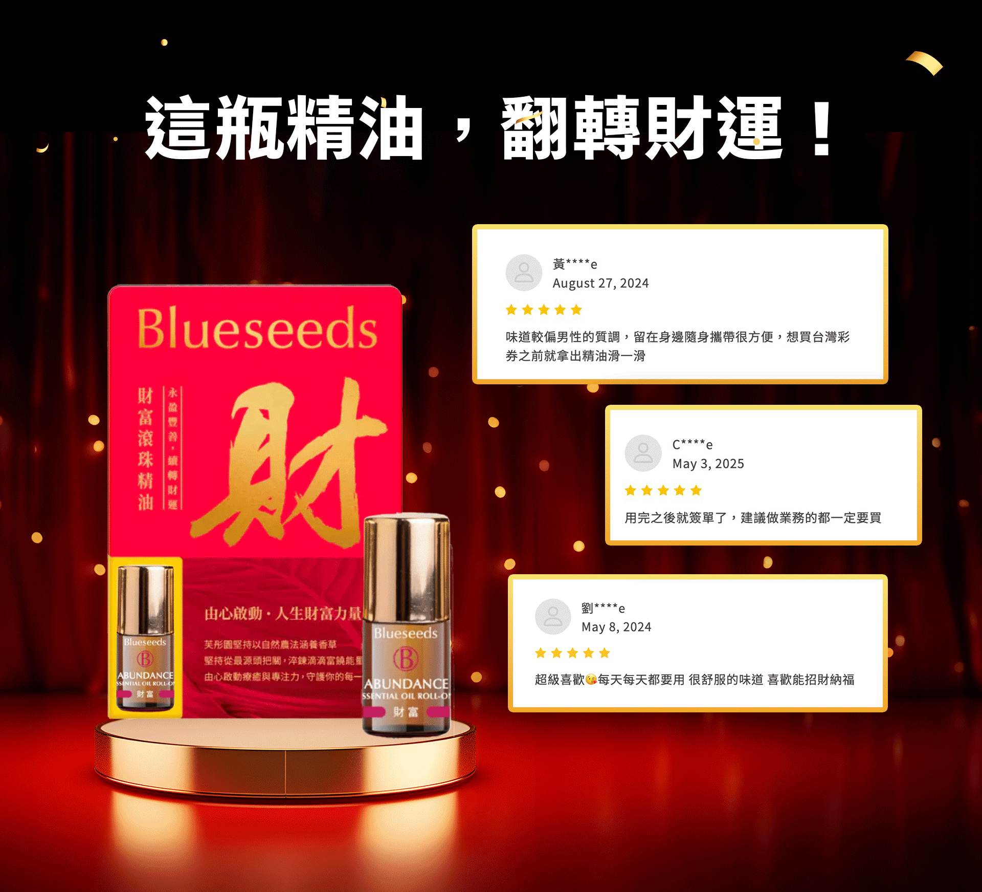 想要提升業績、吸引更多合作夥伴,甚至改善人際關係,讓自己在每一場挑戰中都能優雅應對?不妨讓Blueseeds 財富精油成為您日常的助攻工具,隨時隨地為您加油,幫助您輕鬆突破,迎接更多的機會與成功!