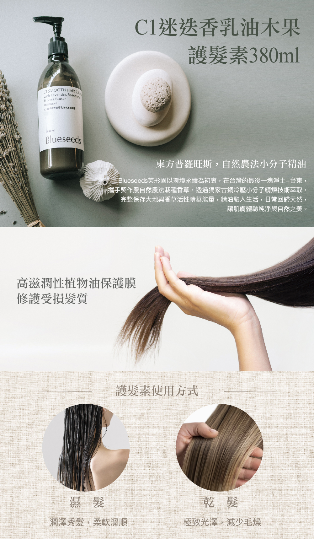 【柔順滋養配方】C1薰衣草迷迭香乳油木果護髮素 380ml ★深層強韌修護 ★馴服毛躁乾澀